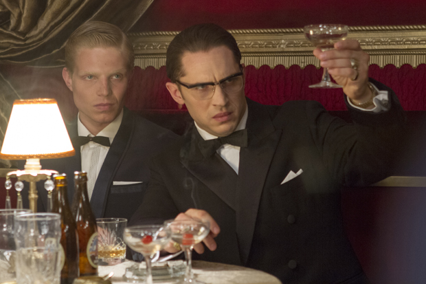 The twins are physically distinguishable as Ronnie wears those thick-rimmed glasses, and he’s been given a squarer jaw via prosthetics, but mostly they are differentiated by Hardy’s acting, which awards each a distinct personality. Reggie is cool, unflappable, rather Clint Eastwood-ish, while Ronnie, who speaks in an adenoidal whine, is seriously unhinged and given to psychotic tantrums. Watching Hardy play opposite Hardy is fascinating, and he does dazzle, but as neither Ronnie nor Reggie are given any interior lives, it is watching at the expense of believing, and at the expense of feeling immersed in the story. I was not immersed, and was often much distracted. The tone, for example, is all over the place. I laughed quite a few times at Ronnie, without knowing if I was meant to, and I laughed at John Sessions’s portrayal of Lord Boothby, without knowing if I was meant to, and I laughed almost constantly at the soundtrack of Sixties pop hits, which I knew I wasn’t meant to, but as it may be the most literal-minded soundtrack of all time, I couldn’t help myself. ‘Chapel of Love’, for example, plays over Reggie and Frances’s wedding, like we can’t see they’re getting married; like we have to be told: ‘Goin’ to the chapel and we’re gonna get married…’ Hilarious. And the glamour? Yes, there is glamour, and everything looks exceedingly glamorous. The suits are razor-sharp. The Ford Anglias are a sparkling black. The nightclubs drip with champagne. This East End shows no hint of poverty or grottiness and, instead, appears as groovily hip and shiny as the Hoxton of today. But our care with any film should only be ‘is it any good?’ and in this instance the answer has to be: ‘probably not, no’.