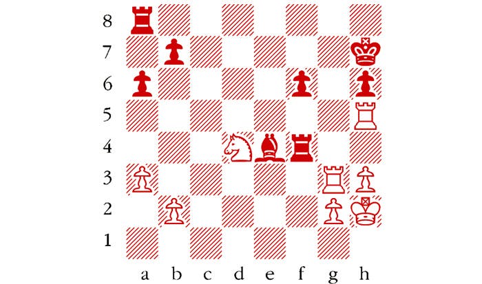 White to play. This position is from Koneru-Zhukova, Monaco 2015. How did White quickly exploit the constricted position of the black king? Answers to me at The Spectator by Tuesday 3 November or via email to victoria@spectator.co.uk or by fax on 020 7681 3773. The winner will be the first correct answer out of a hat, and each week there is a prize of £20. Please include a postal address and allow six weeks for prize delivery.