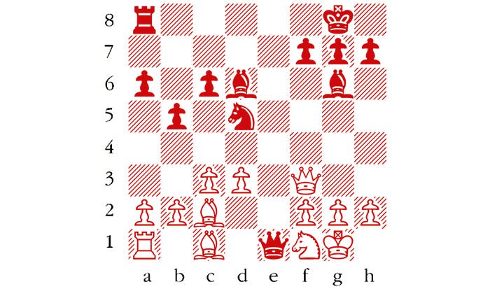 Black to play. This is from Karjakin-Svidler, Fidé World Cup, Baku 2015. The position occurred earlier in the third game detailed above. Black played 1 … b4, missing something much stronger. What should he have played? Answers to me at The Spectator by Tuesday 20 October or via email to victoria@spectator.co.uk. The winner will be the first correct answer out of a hat, and each week there is a prize of £20. Please include a postal address and allow six weeks for prize delivery.