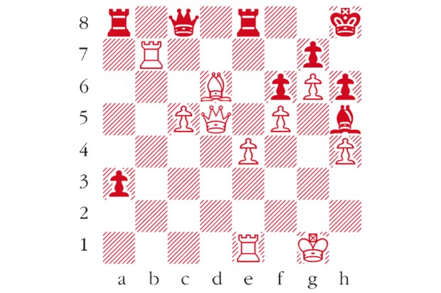 Black to play. This is from Karjakin-Svidler, Fidé World Cup, Baku 2015. The position occurred earlier in the third game detailed above. Black played 1 … b4, missing something much stronger. What should he have played? Answers to me at The Spectator by Tuesday 20 October or via email to victoria@spectator.co.uk. The winner will be the first correct answer out of a hat, and each week there is a prize of £20. Please include a postal address and allow six weeks for prize delivery.