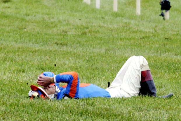 But he hadn’t broken his arm. ‘It’s just bruised,’ said another jockey who rushed to help. This was a relief, although ‘just bruised’ is something they apply to pretty much everything in the life of a jockey. As a trainer once said to the 18-year-old Tony McCoy as two splintered bone ends pressed through his jodhpurs, ‘Are you sure you’ve broken it?’
