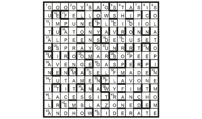 Unclued lights made mottoes around the rim of one-pound coins: (33) NEMO ME (12) IMPUNE (40) LACESSIT, (18) DECUS ET (34) TUTAMEN, and (13) PLEIDIOL (39) WYF I’M (4) GWLAD.