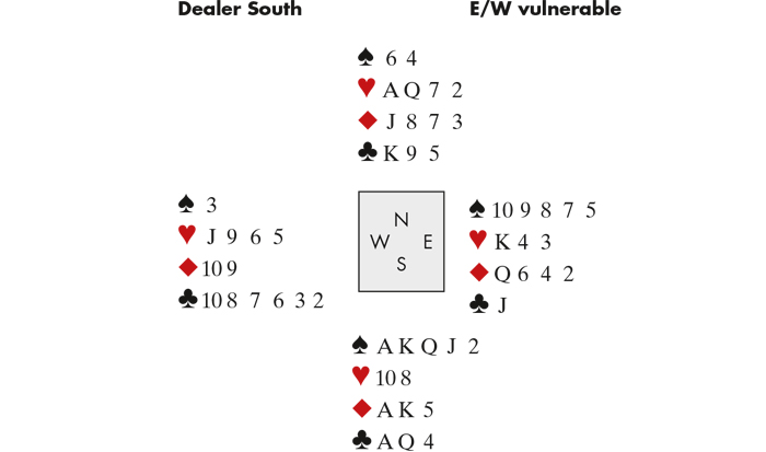 West led a middle Club which David won in hand and tried a Diamond to the Jack and Queen. East thought for a minute or two, and returned a Spade. Two rounds of those brought the unwelcome news, but when the ♦10 fell under the Ace, some parity was restored, and dummy’s ♦8 was good. With 11 tricks in sight, declarer had the option of taking the Heart finesse or squeezing East in the majors.