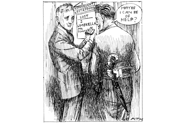 Speaking of gentlemen’s accoutrements: I’ve just been reunited with my magic umbrella for the fourth time in a decade. Hewn from oak by Swaine Adeney Brigg, this umbrella was a wildly generous 30th-birthday present from my old friend (and mutual best man) Aster Crawshaw. It was almost immediately purloined from the cloakroom of Joe Allen’s in Covent Garden. I mentioned this in an interview I gave to the Daily Telegraph, and was amazed to receive an email from Swaine Adeney Brigg offering me a replacement. All was well for several years until I realised the umbrella was again missing. I had no memory of the last time I’d carried it. Too bereft to buy a replacement, many umbrella-less months passed until, one night, I was in a minicab on the way home from supper with my brother. ‘My friend, I remember you!’ the driver exclaimed, ‘I think maybe you left an umbrella in my car last year?’ So I did. And it was delivered back to me the next day. I don’t consider myself especially lucky, but when a few years later the umbrella vanished from the lobby stand at the Connaught, I left my number with the porter, serenely confident it would be returned. And it was. After five hours. With a note of apology so profuse it could have been written by E.M. Forster’s umbrella-rustling Helen Schlegel. The most recent loss occurred on a train to Salisbury. Because Aster had presciently asked for my name to be engraved on the brolly’s brass collar, a splendid employee of South West Trains was able to Google my email and arrange for collection. I’m now torn between never taking the umbrella out of the house again, or hurling it into the sea to discover just how magical it really is.