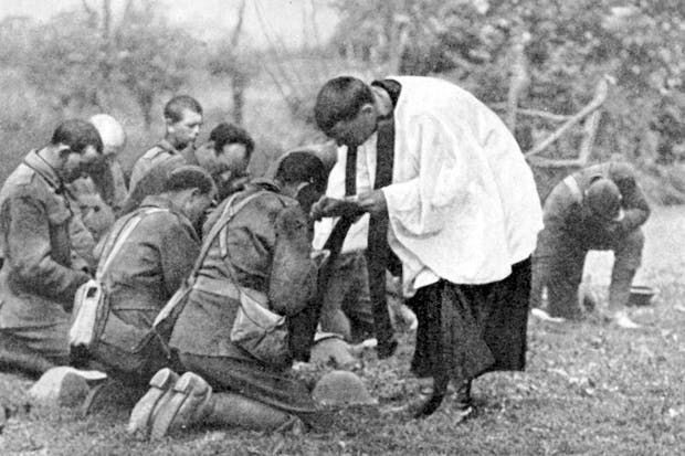 From ‘The Sacrament’, The Spectator, 25 December 1915: We were fairly fagged out, all of us, after a heavy day of it. One by one we scraped the thick, clinging mud off our boots as best we could and took our places at the mess-table. It was a door resting on biscuit-boxes, but we ate what lay on it ready for us as thankfully as if it had been polished mahogany covered with the whitest damask cloth. It was frightfully draughty, and through a shell-hole in one wall came the fitful, silent gleams of the Verey lights as they rose and fell over the trenches. There was an extraordinary silence, broken by nothing louder than the crack of a rifle now and then and the fitful noises of the wind. The guns had stopped their barking and roaring after 50 hours of ceaseless shelling.