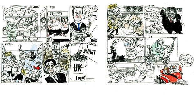 David Cameron, the Prime Minister, said that only electing the Conservatives could ‘save Britain’s economic recovery’. Labour unveiled a poster saying: ‘The Tories want to cut spending on public services back to the levels of the 1930s,’ and Ed Miliband, the party leader, said he would ‘weaponise the NHS’. Two male ‘hedge witches’ were wed under the equal marriage law in a pagan ceremony in Edinburgh. Alexis Tsipras became prime minister of Greece, heading a Syriza coalition. In Paris, gunmen murdered 17 people, 11 at Charlie Hebdo, the magazine that had published cartoons of Mohammed. The price of Brent crude oil dipped below $50 a barrel, down from $107 a year earlier. A French court prevented parents naming their daughter Nutella.