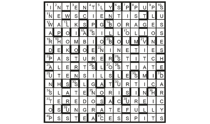 The publication is 11A. Other unclued lights are all anagrams (‘new’ versions) of scientists: 14A SEABORG; 22A EINSTEIN; 23A PASTEUR; 34A TESLA; 37A OERSTED; 38A CURIE; 1D DARWIN; 28D CELSIUS.