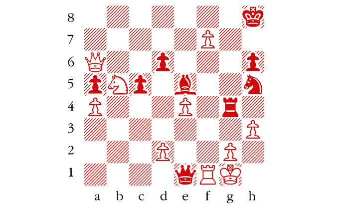 Black to play. This is a variation from Carlsen-Grischuk, London Classic 2015. Carlsen won but this week’s puzzle shows how he could have gone wrong. Black has two ways to win immediately. Can you find both key moves? Answers to me at The Spectator by Tuesday 12 January or via email to victoria@spectator.co.uk. There is a prize of £20 for the first correct answer out of a hat. Please include a postal address and allow six weeks for prize delivery.