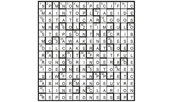 The unclued lights include the words ONE to NINE which had to be entered as figures 1 to 9 in unchecked squares.