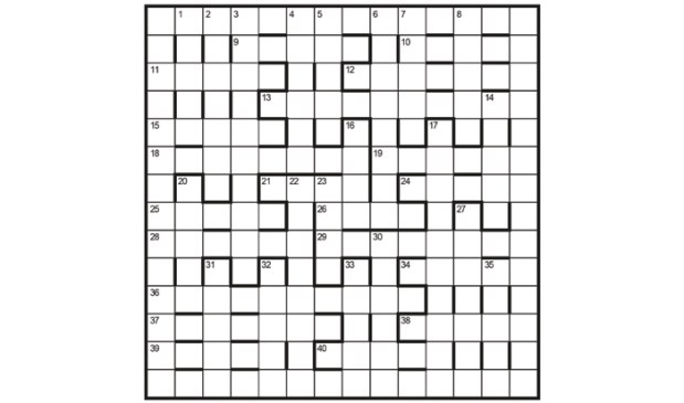 Unclued lights (including one of two words and three pairs, 37 doing double duty) are characters in a play. A representation (fourteen letters) of its title appears in the completed grid and must be shaded.