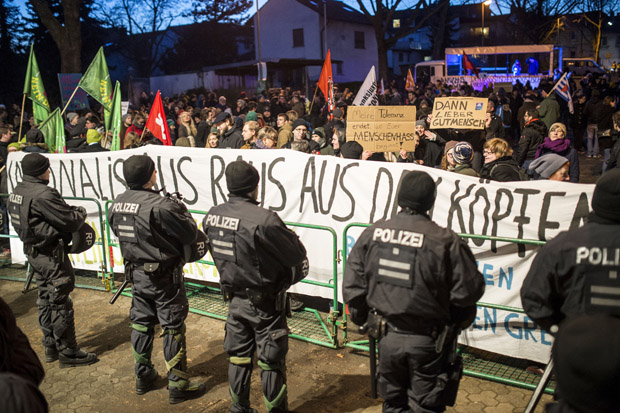 Meanwhile, a mob surrounded a coach taking refugees to a hostel in Clausnitz near the Czech border. When the refugees were reluctant to disembark, police dragged some of them out of the bus and to the hostel. No wonder German politicians claim the ‘police can’t cope’. Sickeningly, there were 920 attacks on refugee hostels in Germany last year.