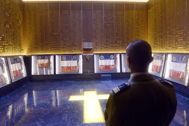 Next we silently meditated on the prosthetic hand and forearm of Captain Jean Danjou. The fighting spirit of the Légion Étrangère is embodied by this macabre artefact. It is its most sacred possession. Danjou fought in the Crimea, lost the hand fighting in Algeria, and was killed in Camarón in Mexico, where he and his 62 men defended a hacienda against a besieging Mexican army of 2,500 infantry and 500 cavalry. It was France’s Rorke’s Drift. During the battle, Danjou made his exhausted men swear on his wooden hand that they would fight to the last round and the last man. When the ammunition ran out, the six légionnaires left standing fixed bayonets and charged the Mexican army. Three were killed, three captured. The honourable Mexican general applauded this display of French courage by allowing these three to leave the field bearing their arms and the body of their slain commander. Camerone Day, 30 April, is the Foreign Legion’s big commemoration day. Danjou’s prosthetic hand is taken out of its glass case and paraded before the assembled Legion at their Aubagne barracks.