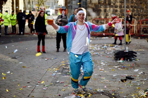 One very wonderful thing about my awful hotel was that every guest that I encountered while coming and going from my room was wearing fancy dress and either drunk or penitently hungover but setting out determined to get drunk again. The room at the end of my corridor, einunddreissig, was occupied by a young Italian couple who came and went dressed in furry polar-bear suits. These two were always drunk and always arguing. Whether they were having one long continuous argument or the subject changed sometimes was impossible to tell. The woman shrieked at the man with a level of vituperation that was embarrassing to witness. They would leave the hotel in their polar-bear suits drunk and arguing and return even more drunk and still arguing.