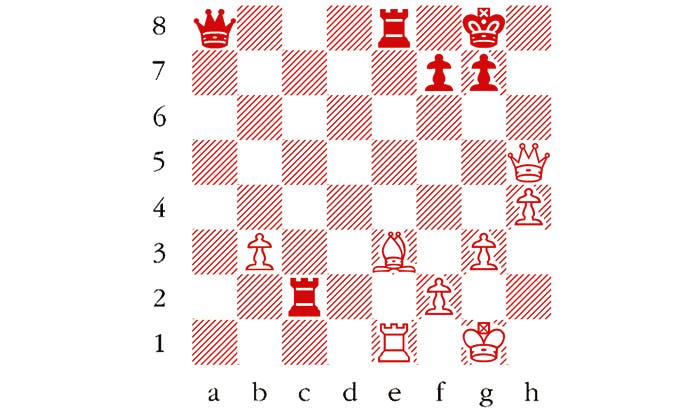 Black to play. This is from Pichot-Khismatullin, Moscow 2016. What was Black’s killing blow? Answers to me at The Spectator by Tuesday 5 April or via email to victoria@spectator.co.uk or by fax on 020 7681 3773. There is a prize of £20 for the first correct answer out of a hat. Please include a postal address and allow six weeks for prize delivery.