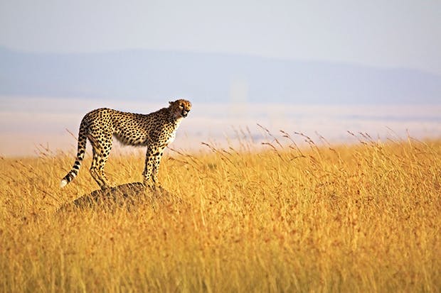 One evening I was on the farm boundary when I saw a harem of about 30 impala antelope leaping over the wire into us in a graceful ballet. Each night lion have been waking me up because they are simply crawling under the electric strands. One roared from a garden flowerbed so near my bedroom that I considered shutting the windows in case it joined me under the duvet. On the plains I encountered a cheetah on the summit of an anthill, angrily flicking his tail, presumably because the grass around him was so tall that he could not observe any animals to hunt. A resident leopard mauled one of our baby donkeys. Reticulated giraffe, rare in the world today, walked by the house like sailboats rocking on a gentle sea. At the barn I rumbled a herd of eland that guiltily ran off after raiding my haystack. The rocky west corner of the farm is now so infested with buffalo that I dare not take my evening run through there. To top it off, the elephant are back. I came face-to-face with them in thick wooded bush, seeing first a tusk and a wall of wrinkly grey hide. Two huge bulls have taken up residence in the valley, having broken through the fence as if it was cardboard, and to show their contempt for me they have made a point of pushing over a couple of trees in the garden.