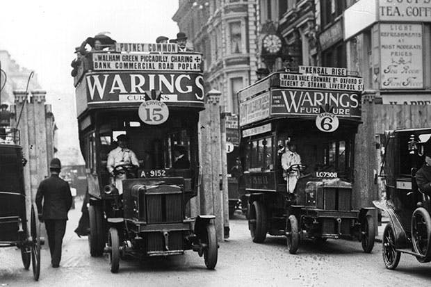 From ‘The softening of street manners’, The Spectator, 20 May 1916: Generally the public opinion of the ’bus entirely upholds the conductor. The influence of the tyrant is too strong to allow of protest, but now and then cases of rebellion occur, and bold females who consider themselves slighted vow that they will write to the company. But an ordinary ’bus-load contains no such heroines…. Sometimes, however, the will of the passengers prevails by reason of unanimity. A few nights ago a drunken soldier got, late at night, into a West End ’bus. The conductor civilly asked him to get out. The man began to argue, and a number of elderly women took his part. ‘Let him stop,’ they begged, one after another. ‘It was not as if he were abusive,’ said one. ‘No, indeed,’ agreed another, ‘considering he has had a drop too much he’s very nice.’