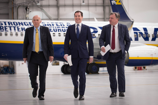 A Ryanair plane in a Stansted hangar was not the best backdrop for George Osborne’s claim that the economic argument about the European Union is now over and that his ‘consensus’ has prevailed. In recent years, Ryanair has lost its status as the fastest-growing budget airline in Europe: that honour goes to Norwegian Air, which has thrived outside the EU. And on the day of the Chancellor’s speech, a group of Ryanair passengers had announced their intention to take out a lawsuit against the company for what they see as unfair tricks to disguise the true cost of tickets.