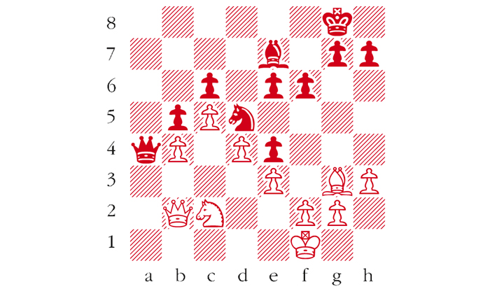 Black to play. This position is from So-Nakamura, Ultimate Blitz Challenge, Saint Louis 2016. How did Black make a key breakthrough while also winning material? Answers to me at The Spectator by Tuesday 31 May or via email to victoria@spectator.co.uk or by fax on 020 7681 3773. There is a prize of £20 for the first correct answer out of a hat. Please include a postal address and allow six weeks for prize delivery.