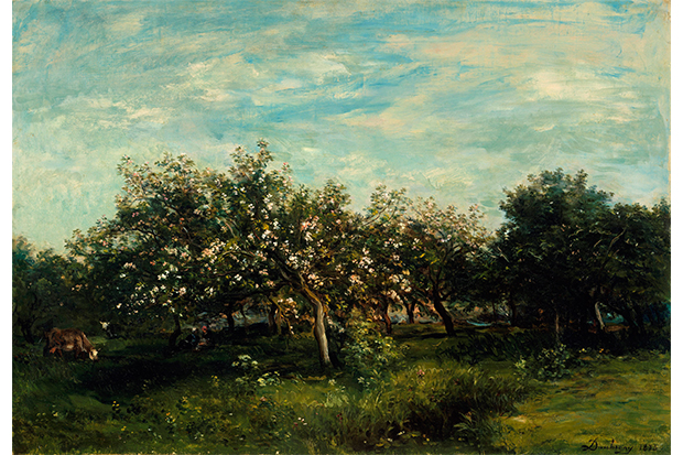 The exhibition focuses on Daubigny’s influence on both Monet and Van Gogh with the stylistic succession made clear through intelligently and effectively paired examples that match subject and technique. Daubigny was obsessed with the countryside, finding endless inspiration in the orchards and farms of provincial France. Van Gogh was drawn to the same places and the same motifs, spending his final days working with crazed intensity in the midst of Daubigny’s familiar landscapes at Auvers before shooting himself.
