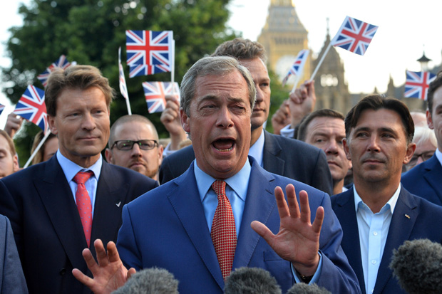 The highlight of my London season was, of course, giving a dinner at Hertford Street for my friend Greville Howard and then being taken upstairs by Robin Birley to meet my hero, Nigel Farage. Let’s face it, Nigel is the big winner in all this. Ukip members were called lotsa names, the nicest being fruitcakes, but they’re the ones who forced the vote and who inspired more than 17 million Brits to vote Brexit. We had a very good chat, Lord Howard asking Nigel what we should guard against having won. That was an easy one. Not following through, a May-like dependence on civil servants (my words), who will water everything down. We then proceeded to smoke non-stop just to piss a few people off.