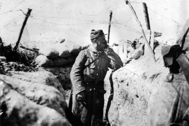 July 1916: A French soldier in a recently captured German trench on the Somme (Photo: Getty)