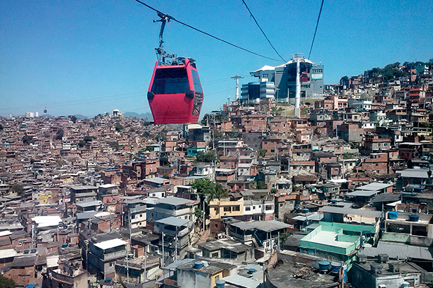 Rio’s waterfront regeneration has now reached the gates of the English Cemetery. A new cable car swings overhead, lifting visitors from one end of Morro da Providência to the other with a stop at the heart of the favela in between. Taxi drivers grumble that it robs them of fares through the fume-filled João Ricardo tunnel, which used to serve as the main route from the city centre.