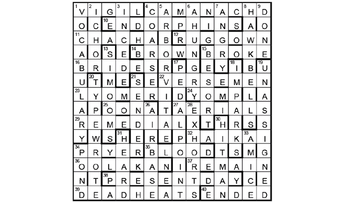 BRID(G)ES (16), DON(N)E (9), S(P)ENDER (21),(W)HITMAN (30) and PO(U)ND (34D). Title: Hard(y).