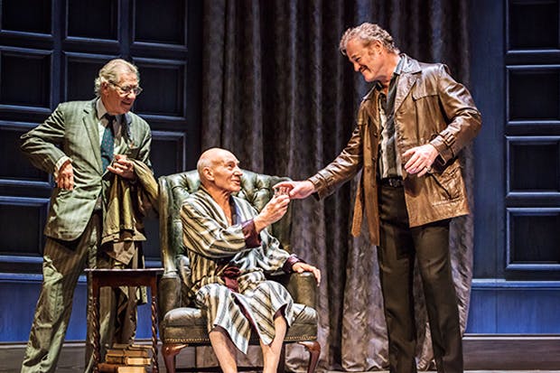 The show needs two world-class actors of equal potency and it’s a genuine thrill to see Patrick Stewart and Ian McKellen taking each other on at full force. Hirst, afflicted with dementia, sits ramrod straight in his armchair, whisky in hand, saying barely a word but exuding an unfathomable menace. Even Stewart’s head, that great shaven orb, manages to be enigmatic. Ian McKellen’s dainty, effeminate Spooner minces about with a twinkly knowingness. His clowning as he tiptoes to the whisky cabinet falls just short, but only just, of self-parody. He’s probably aware that the play can’t work as burlesque but must retain the authentic atmosphere of confusion and despair. Director Sean Mathias can be proud of a production that is often hilarious, sometimes puzzling, and only seriously boring for about half an hour.