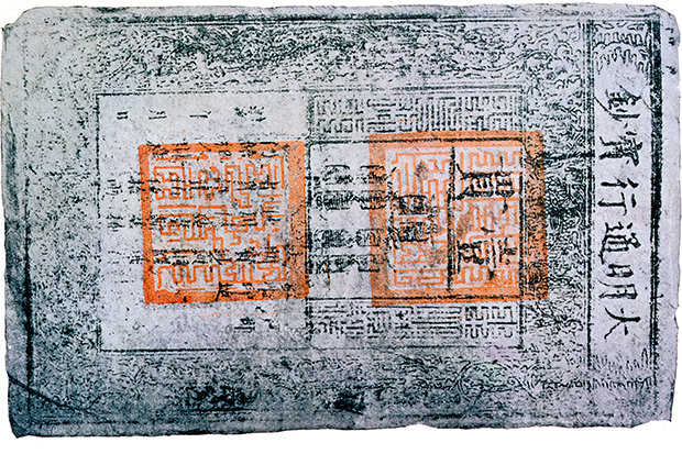 Kublai Khan, said Marco Polo, had ‘a more extensive command of treasure than any other sovereign in the universe’. There were no jangling pockets of coins in Kanbalu. Bark had been stripped from the mulberry trees and beaten into paper notes. The notes carried delicate little pictures of earlier currency — long, frayed ropes weighed down with coins. It was as though they were mocking the old ways.