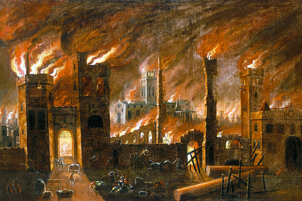 Rebecca Rideal and Alexander Larman both offer accessible and entertaining commemorations of this historical moment in their new books. While their accounts have many affinities — chiefly a narrative emphasis on individual historical characters — they frame the central event of the Great Fire in different ways. Rideal offers a chronological survey, beginning with the explosion of a ship forebodingly called The London in the Thames estuary in March 1665, before moving through a series of historical snapshots: the onset of plague and the exodus of about 30,000 people from the capital in July 1665; the Second Anglo-Dutch war and the Dutch naval victory in the Four Days’ Fight in June 1666; the start of the Great Fire in Thomas Farriner’s bakery on Pudding Lane in September 1666.