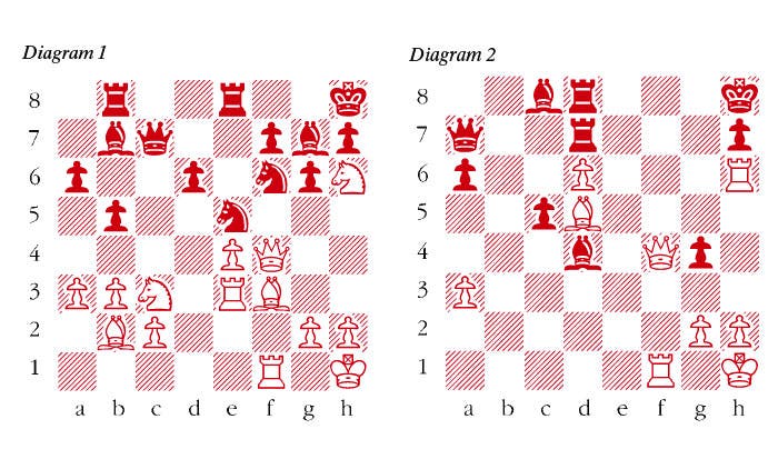1 e4 c5 2 Nf3 d6 3 d4 cxd4 4 Nxd4 Nf6 5 Nc3 e6 6 Be2 a6 7 0-0 Nbd7 8 f4 b5 9 Bf3 Bb7 10 a3 Qc7 11 Qe1 Be7 12 Kh1 12 e5 would be bad on account of 12 … dxe5 13 Bxb7 Qxb7 14 fxe5 Bc5. 12 … Rb8 Further protecting the bishop puts a stop to White’s plans for e4-e5. 13 b3 0-0 14 Bb2 Rfe8 15 Qg3 Bf8 16 Rae1 Preparing to play e4-e5 but Black strikes first. 16 … e5 17 Nf5 Kh8 18 Qh4 exf4 19 Qxf4 Ne5 20 Re3 g6 21 Nh6 Bg7 (see diagram 1) 22 Nd5 This leaves White struggling. He should prefer 22 Be2 with an equal position. 22 … Nxd5 23 exd5 f6 Not 23 … Qxc2 when 24 Nxf7+ Nxf7 25 Qxf7 wins. 24 Be4 This is unsound as White gains insufficient compensation for the piece. He had to try 24 Qh4 although after 24 … Nxf3 25 Rexf3 f5 Black has a fine position. 24 … g5 25 Qf5 Bxh6 26 Qxf6+ Bg7 27 Qf5 If 27 Qxg5 Rf8 is winning for Black. 27 … Ng6 28 Rh3 Bxb2 29 Qxg6 Re7 30 Rh6 Rg8 Not the natural 30 … Rbe8 on account of 31 Rxh7+ 31 Qf5 Bc8 32 Qf3 g4 32 … Qc3 also wins easily, e.g. 33 Bxh7 Qxf3 34 Be4+ Kg7 35 Rh7+ Kf8 36 Rxf3+ Ke8 and White has run out of steam. 33 Qd3 Be5 34 c4 bxc4 35 bxc4 Reg7 36 c5 dxc5 37 d6 Qa7 38 Bd5 Rd8 39 Qe4 Bd4 40 Qf4 Rgd7 (see diagram 2) A terrible blunder that loses at once. Black could win with 40 … Rdg8 41 Bxg8 Rxg8 or the cold-blooded 40 … Qd7, meeting 41 Qf8+ with 41 … Rg8. 41 Rf6 Black resigns There is no defence to 42 Rf8+ as 41 … Bxf6 42 Qxf6+ Rg7 43 Qxd8+ mates. White also had another beautiful win with 41 Rg6 when 41 … hxg6 42 Qh6+ Rh7 43 Rf8+ also leads to mate.