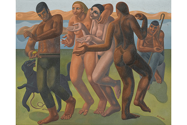 It’s interesting to recall that when Chaos generated life in Hesiod’s Theogony, it spawned Darkness and Night. The dark humour of the myths was probably in fact the artist’s most useful tool for illustrating human absurdity and the capriciousness of fate. Look, then, to the three goddesses in Royal Academician William Roberts’s ‘Judgement of Paris’ (1933), who carouse like drunken oiks. The dejected typist of Eliot’s ‘The Waste Land’ finds her counterpart in Roberts’s compliant-looking Paris. Even the most ridiculous scenes have a dark undercurrent, because while the classical was authoritative, it was also imperfect.