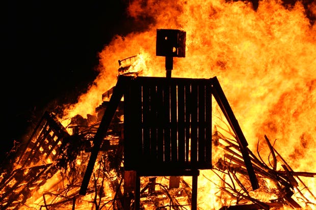 It’s really not just any old bonfire. It’s nothing like any bonfire I’ve ever seen. It’s the size of an office building, and has been constructed with as much architectural skill. The main structure appears to be so intricate as to require planning permission to pull it down. But of course it won’t be pulled down, it will be set on fire as people shriek with delight. I shuddered at the thought as I stood gazing up at it.