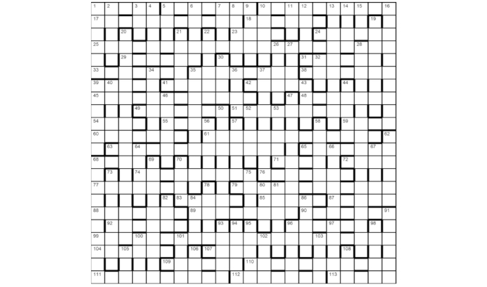 99 (five words) and 20 (four words), whose 37 were 61 (two words) and 35D (two words), are seasonal 53 featuring the 78 whose name is formed by two unclued lights. Two unclued lights (of two words each) are the names of the 78’s 68D. In nine clues, cryptic indications omit reference to parts of answers; these parts must be highlighted, to reveal an item suggested by 99. Each of twelve Down clues consists of definitions of two words of different lengths. In seven cases the shorter word (produced when a letter 113 from the longer word) is the entry; in five cases the longer word (made by adding the appropriate letter to the shorter word) is the entry. Numbers in brackets refer to lengths of entries. Each letter that 113 becomes part of an unclued light; this, and a neighbouring word, must be highlighted, to reveal 20’s setting. Ignore an apostrophe in one unclued light.