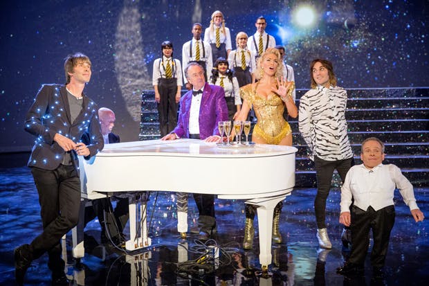 At first, the combination of a satire on TV’s desire to jazz up science with an obvious desire to jazz up science felt like a shameless attempt by Idle to have his cake and eat it. Yet, the longer the programme went on, the more successful the attempt became. The songs once again demonstrated his skill at putting complicated ideas to jaunty tunes and cheerfully kitsch choreography. Fielding and Davis delivered their roles as underminers of scientific seriousness with infectious glee, and lots of crowd-pleasing jokes — although to its credit the show held out for nearly 20 minutes before giving us a pun on ‘Uranus’. Above all, Cox played a blinder as the kind of good sport that Des O’Connor used to be as a victim of Morecambe and Wise (who also appeared in the mix — or at least were rather well impersonated — as a pair of quantum mechanics).