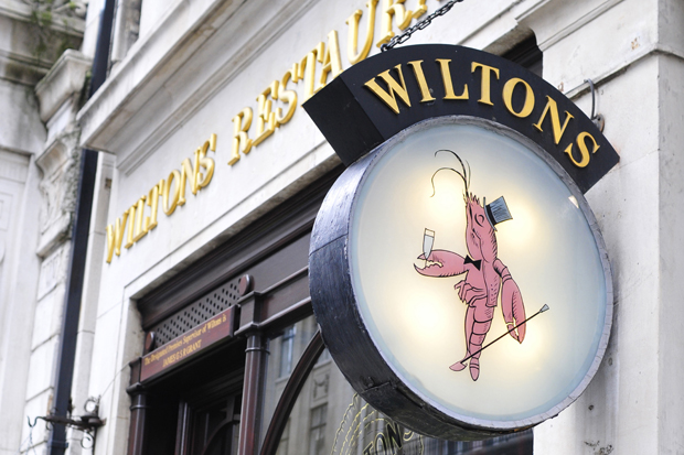Wiltons is beautiful but it is not dramatic; it borrows nothing from the crazy sock shops. It has pale golden walls and green velvet chairs. The carpets are decorated with a curling ‘W’. This is as much self-worship as it allows itself but there is an enormous painting of a parrot, a peacock and a pigeon by an artist obsessed with alliteration in bird names. It is obviously a sanctuary for its regular customers, who are rich, and sometimes aristocratic, males, refugees from nearby clubs. They have specialised one-person tables at the front, opposite the bar, where they can howl for claret; at the back, from the booths, they howl in pairs. Rules in Covent Garden — red and gold, with a topless Britannia — is what tourists think is a posh English restaurant; it guest-starred in Downton Abbey as itself. Wiltons really is a posh English restaurant, and it has the confidence — the subtlety and the authenticity — not to dress as a Christmas cracker. It only allows itself to go wild with the cheese trolley. It holds a Stilton the size of a cushion, which shrinks through the night.
