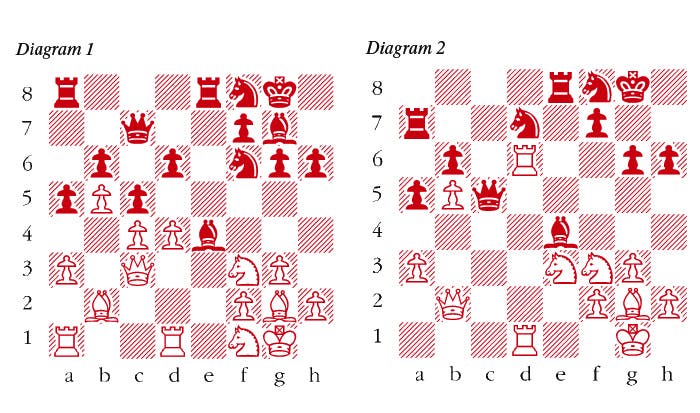 1 Nf3 Nf6 2 c4 g6 3 b4 Bg7 4 Bb2 0–0 5 g3 b6 6 Bg2 Bb7 7 0–0 d6 8 d3 Nbd7 9 Nbd2 e5 10 Qc2 Re8 11 Rfd1 a5 12 a3 h6 13 Nf1 It is a mistake to play 13 Nxe5? on account of 13 … Bxg2 14 Nxd7 Qxd7 15 Kxg2 Rxe2, when Black controls the e-file as well as the long light diagonal after the further … Qc6+. 13 … c5 Better is simply to play 13 … e4 14 dxe4 Nxe4 15 Bxg7 Kxg7 16 N3d2 Qe7 with an even game. 14 b5 A mistake. 14 Nxe5 is surely the best move. Strangely, both players seemed to have underestimated it. After 14 … Bxg2 15 Nxd7 Qxd7 16 Kxg2 axb4 17 axb4 Rxa1 18 Bxa1 cxb4 19 Rb1, the pawn on b4 eventually falls. 14 … Nf8 15 e3 Qc7 16 d4 Be4 17 Qc3 Réti opts for an ambitious move, putting pressure on the centre and along the dark diagonal, but the queen is awkwardly placed in front of the bishop. 17 … exd4 18 exd4 (see diagram 1) 18 … N6d7 It is a mystery why Capablanca did not play the obvious 18 … Ne6, fighting more directly for control of the centre. 19 Qd2 cxd4 It is better to reinforce his position with 19 … Rad8, or else admit the mistake and return the knight to f6, although this is psychologically one of the hardest things to do. 20 Bxd4 Qxc4 21 Bxg7 Kxg7 22 Qb2+ Kg8 23 Rxd6 Qc5 Black’s idea is to conduct an active defence and prevent the dangerous manoeuvre Nf1-g4 with … Qh5, but it backfires against Réti’s accurate play. The passive 23 … Qc7 was correct. 24 Rad1 Ra7 This looks disharmonious since the rooks lose contact with each other. 25 Ne3 (see diagram 2) 25 … Qh5 At this point the only defence is 25 … h5, crudely preventing Ng4. White can then play 26 h4. 26 Nd4 As Alekhine points out, the surprising continuation 26 R1d5! Bxd5 27 g4 Bxf3 28 gxh5 Bxh5 29 Bc6 etc, would have won the queen for a rook, knight and pawn. 26 … Bxg2 27 Kxg2 Qe5 Capablanca is really doing his upmost on the fourth rank with his strongest piece, but the queen is no match for White’s heavily centralised knights and rooks. Black had to try an exchange sacrifice and play 27 … Rxe3! 28 fxe3 Ne5. 28 Nc4 Qc5 29 Nc6 Alternatively, 29 Rc6 Qd5+ (or 29 … Qh5 30 Nf3 with complete domination) 30 f3!, threatening 31 Ne6 is also quite convincing. 29 … Rc7 30 Ne3 Ne5 31 R1d5 Black resigns