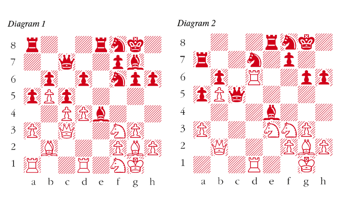 1 Nf3 Nf6 2 c4 g6 3 b4 Bg7 4 Bb2 0–0 5 g3 b6 6 Bg2 Bb7 7 0–0 d6 8 d3 Nbd7 9 Nbd2 e5 10 Qc2 Re8 11 Rfd1 a5 12 a3 h6 13 Nf1 It is a mistake to play 13 Nxe5? on account of 13 … Bxg2 14 Nxd7 Qxd7 15 Kxg2 Rxe2, when Black controls the e-file as well as the long light diagonal after the further … Qc6+. 13 … c5 Better is simply to play 13 … e4 14 dxe4 Nxe4 15 Bxg7 Kxg7 16 N3d2 Qe7 with an even game. 14 b5 A mistake. 14 Nxe5 is surely the best move. Strangely, both players seemed to have underestimated it. After 14 … Bxg2 15 Nxd7 Qxd7 16 Kxg2 axb4 17 axb4 Rxa1 18 Bxa1 cxb4 19 Rb1, the pawn on b4 eventually falls. 14 … Nf8 15 e3 Qc7 16 d4 Be4 17 Qc3 Réti opts for an ambitious move, putting pressure on the centre and along the dark diagonal, but the queen is awkwardly placed in front of the bishop. 17 … exd4 18 exd4 (see diagram 1) 18 … N6d7 It is a mystery why Capablanca did not play the obvious 18 … Ne6, fighting more directly for control of the centre. 19 Qd2 cxd4 It is better to reinforce his position with 19 … Rad8, or else admit the mistake and return the knight to f6, although this is psychologically one of the hardest things to do. 20 Bxd4 Qxc4 21 Bxg7 Kxg7 22 Qb2+ Kg8 23 Rxd6 Qc5 Black’s idea is to conduct an active defence and prevent the dangerous manoeuvre Nf1-g4 with … Qh5, but it backfires against Réti’s accurate play. The passive 23 … Qc7 was correct. 24 Rad1 Ra7 This looks disharmonious since the rooks lose contact with each other. 25 Ne3 (see diagram 2) 25 … Qh5 At this point the only defence is 25 … h5, crudely preventing Ng4. White can then play 26 h4. 26 Nd4 As Alekhine points out, the surprising continuation 26 R1d5! Bxd5 27 g4 Bxf3 28 gxh5 Bxh5 29 Bc6 etc, would have won the queen for a rook, knight and pawn. 26 … Bxg2 27 Kxg2 Qe5 Capablanca is really doing his upmost on the fourth rank with his strongest piece, but the queen is no match for White’s heavily centralised knights and rooks. Black had to try an exchange sacrifice and play 27 … Rxe3! 28 fxe3 Ne5. 28 Nc4 Qc5 29 Nc6 Alternatively, 29 Rc6 Qd5+ (or 29 … Qh5 30 Nf3 with complete domination) 30 f3!, threatening 31 Ne6 is also quite convincing. 29 … Rc7 30 Ne3 Ne5 31 R1d5 Black resigns