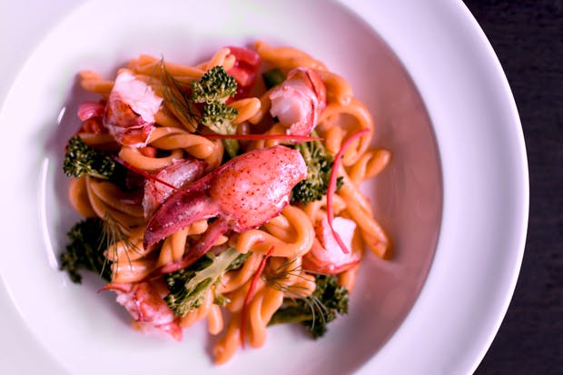 We eat a plate of pecorino di fossa and a fennel-flavoured salami, both as good as you will find in the city; then an exquisite Cornish crab salad; a couscous salad with pomegranate, buffalo mozzarella and tomato which is, miraculously, not wet but wondrous; a fine risotto of mixed mushroom; and — as tribute to The Godfather, who would never come here, because it features whimsical tableware, and he is a fictional character — some cannoli. (‘Leave the gun, take the cannoli.’) The portions are not vast; we are not stupefied or poisoned with carbohydrate, which is a danger in lesser Italian restaurants with their weaponised bread baskets; we leave content.