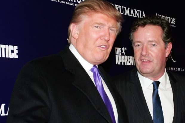 A few weeks ago I was having an argument with Piers Morgan on Twitter. Oh God, is that really how I’m going to start this column? What have I become? I was, though, and it started because he was brown-nosing Donald Trump. We’re talking a real nasal frottage here. I expressed derision, and he expressed fury at my derision, and on it went. At one point he called me ‘tough guy’. It was all very manly. Although it wasn’t a one-off, because he’s been at it — I mean the brown-nosing — ever since, including in this very magazine. A column here, a TV appearance there. Last weekend, he was bickering about Trump with Alastair Campbell on Peston. And I’ve been wondering what’s going on.