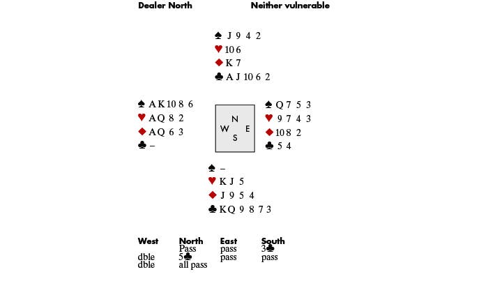 At table 1, Zia Mahmood was declarer. West led the ♠K. Zia ruffed and played a diamond. West (Piotr Wiankowski) hopped up with the ♦A (why?). Zia ruffed the spade return, drew trumps, cashed the ♦K, came to hand and tabled the ♦J, pinning East’s ♦10 and promoting his ♦9. An unmakeable contract made. At table 2, Dror Padon got the same lead. This time, when he played a diamond, West played low, but East (Justin Hackett) played the ♦8 under dummy’s ♦K and then, on the ♦7, followed with the ♦2. Dror ran the ♦7; West won with the ♦A, and Dror later pinned East’s ♦10 as Zia had done. At table 3, Piotr Tuczynski was declarer. The play went the same way, and East, John Hurd, also played the ♦8 then the ♦2! (Tuczynski erred, however, by ruffing the ♦5 in the hope the ♦Q would drop.) What was the ♦8 — ♦2 all about? Reverse count, I guess. How costly to give count automatically!