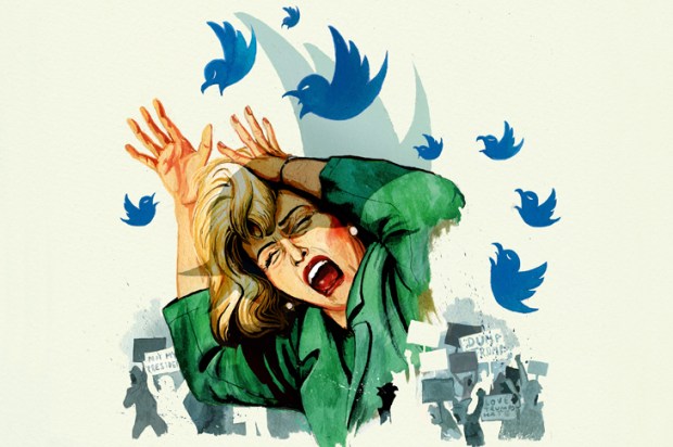 There was little sign of that composed, effective response in the Trump protestors outside Downing Street on Monday night. As individuals, they were a restrained bunch — largely white, middle-class, mostly in their twenties. The odd wisp of dope smoke drifted down Whitehall, and there were a few starry-eyed activists on the fringes. One handed me a flyer headlined ‘Brexit is Racist’. But this was Middle England — or Middle London — on the march. As I wheeled my bike through the crowds, apologising for bumping into people, they displayed the chief distinguishing mark of English civilisation — they said ‘Sorry’ every time I said ‘Sorry’, even though it wasn’t their fault.
