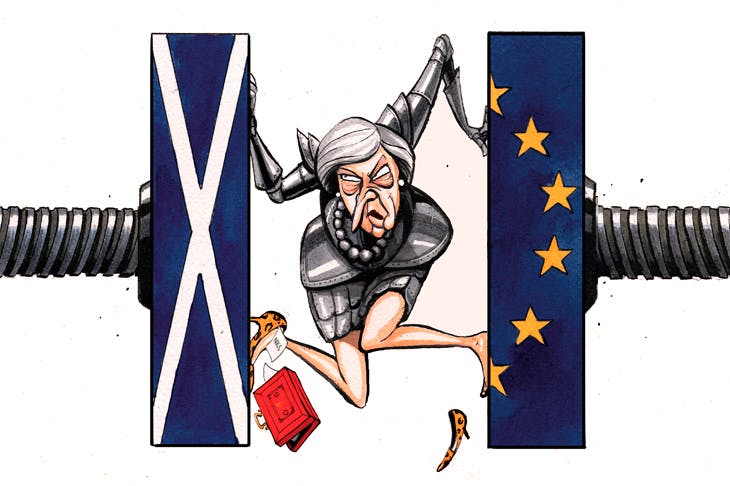But Downing Street is privately moving towards a bolder position now. This would see Mrs May insisting that Ms Sturgeon secures a mandate for a referendum in the next Holyrood elections (which are not scheduled till 2021). Such a demand will infuriate the SNP; Nicola Sturgeon has been taking to Twitter with almost Trumpian energy to say that her democratic mandate is bigger than the unelected Mrs May’s. She argues that the SNP manifesto made it clear that a ‘material change’ could lead to a second independence referendum — and who would deny that Brexit meets that test? With the support of the Greens, there is a majority for another vote at Holyrood already.