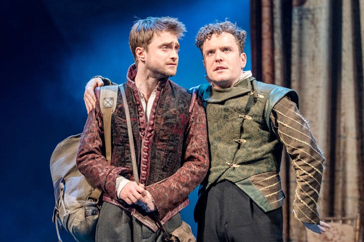 Harry Potter, who uses the stage name Daniel Radcliffe, is a producer’s delight. By now it’s becoming clear that the four-eyed wizard lacks distinction as an actor. He’s not a comedian, certainly not a leading man or a heart-throb, and he hasn’t the ugliness or eccentricity to be a villain. But this Polyfilla quality means he can be dropped into anything without harming the fabric. His presence in Rosencrantz and Guildenstern Are Dead — a difficult and at times flimsy exhibition of varsity wit — is an insurance policy that will guarantee brisk business at the box office. He and his co-star Joshua McGuire play Hamlet’s faithless schoolfriends, who pootle around the corridors of Elsinore discussing existence, identity, chance, coincidence and mortality (‘death: the absence of presence’). Radcliffe’s defining attribute, bemused amiability, works well here and he doesn’t seem to mind that he’s being comprehensively outgunned by the goofily funny McGuire. And both are thrust into the shadows by the volcanic arrival of David Haig, who gives a masterclass in dominance as a street hustler who leads a troupe of strolling thesps.