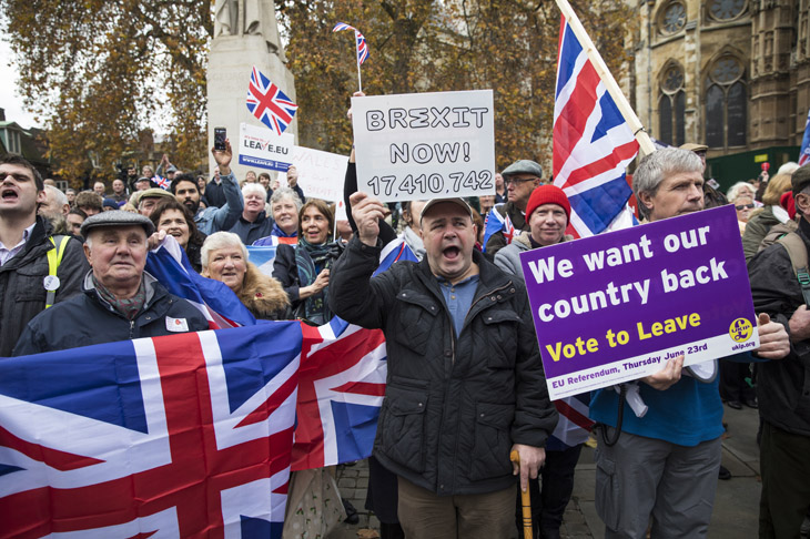 I’m cheering up about Brexit. The moaning has to stop. Why be downhearted and edgy when you’re confident of your argument? Leavers: you’re all wrong. I’m not totally sure — one never can be — and certainly I could be mistaken: and one day we’ll know. Meanwhile I place my confidence in the judgment of those in British politics I most admire, people like Michael Heseltine, Chris Patten, John Major, Ruth Davidson and Kenneth Clarke; and, sticking to my guns and with a merry two fingers up to the lot of you, I leave you Brexit types to the snarling din emanating from your Brexit cave. Chins up, Leaver trolls — you won — remember? It’s all going to be fabulous — remember? Why the cross faces?