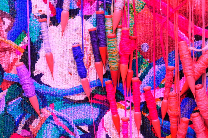 The Workshop produces woven tapestries on looms often of an enormous size using the finest Australian wool. Modelled on the Dovecot Tapestry Studio established in Edinburgh in 1912 by the Marquess of Bute, there is close collaboration and interaction between the artist, weaver and dyer. The results are famous for their vibrancy, technical accomplishment and interpretation of major Australian artists including Arthur Boyd, John Olsen, Imants Tillers, John Wolseley, Ginger Riley and Bronwyn Bancroft. Perhaps the Workshop’s most famous product hangs in the Great Hall of Federal Parliament. The Workshop is well worth a visit.