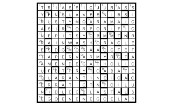 Corrections of misprints in clues give INSIDE OUT. Thematic entries at 2, 15A, 25, 30 and 39 are defined by 5, 28, 11, 21 and 12.