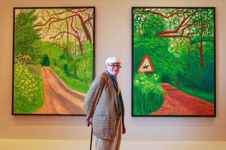 David Hockney inside the exhibition at NGV