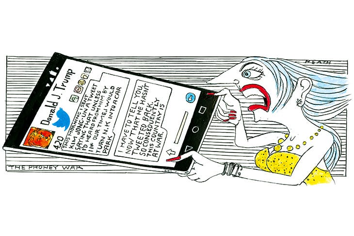 Theresa May, the Prime Minister, visited Saudi Arabia without covering her hair, or even wearing a hat. Earlier, asked whether Britain’s response to Spain’s ambitions to rule Gibraltar meant war-war or jaw-jaw, said: ‘It’s definitely jaw-jaw.’ She was responding to a hoo-ha over remarks by Lord Howard of Lympne, a former leader of the Conservative Party, about a paragraph at the end of draft negotiation outlines circulated by Donald Tusk, the president of the European council, that said: ‘No agreement between the EU and the United Kingdom may apply to the territory of Gibraltar without the agreement between the Kingdom of Spain and the United Kingdom.’ Lord Howard had said on television that ‘another woman prime minister sent a task force halfway across the world to protect another small group of British people against another Spanish-speaking country’.
