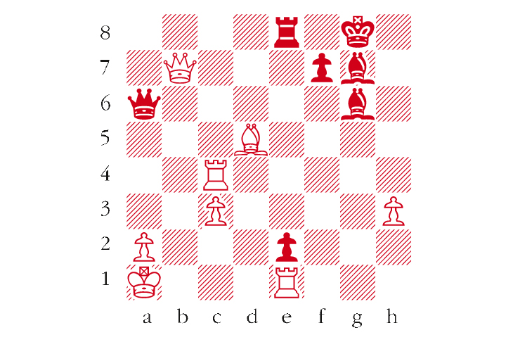 Black to play. This position is from Arnason-Keene, London 1981. This position also arose from a Modern Defence. How did Black finish off? Answers to me at The Spectator by Tuesday 30 May or via email to victoria@spectator.co.uk. There is a prize of £20 for the first correct answer out of a hat. Please include a postal address and allow six weeks for prize delivery.